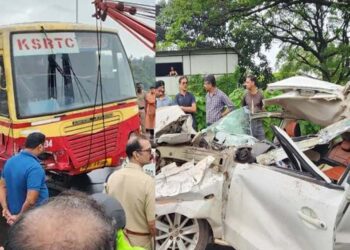 ബെംഗളൂരു: ഛർദ്ദിക്കാൻ തല പുറത്തേക്കിട്ടു ബസ് യാത്രക്കാരി ടാങ്കർ ലോറിയിടിച്ച്‌ മരിച്ചു. കർണാടകയിലെ മൈസൂരുവിലാണ് സംഭവം. ആർടിസി ബസിലെ യാത്രക്കാരിയാണ് മരിച്ചത്. ഇവർ മൈസൂരുവിൽ നിന്ന് ഗുണ്ടൽപ്പേട്ടിലെക്ക് ...