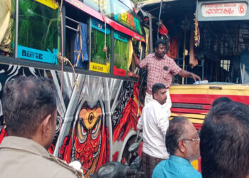 എരുമേലിയിൽ മിനി ബസും KSRTC ബസും കൂട്ടിയിടിച്ച് അപകടം; ആറ് പേർക്ക് പരിക്ക്