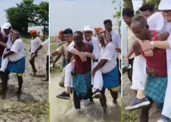 വിവിഐപി അല്ലേ, ചെളിയിൽ ചവിട്ടാമോ !! സ്വന്തം മണ്ഡലത്തിലെ വെള്ളപ്പൊക്കം കാണാൻ കോൺഗ്രസ് എംപി എത്തിയത് കർഷകന്റെ തോളിലേറി; ബിഹാറിൽ നിന്നുള്ള ദൃശ്യങ്ങൾ