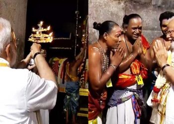 ചെന്നൈ: ദ്വിദിന സന്ദർശനത്തിനായി തമിഴ്നാട്ടിലെത്തിയ പ്രധാനമന്ത്രി നരേന്ദ്രമോദി തിരുച്ചിറപ്പള്ളിയിലെ ഗംഗൈകൊണ്ട ചോളപുരം ക്ഷേത്രത്തിൽ ദർശനം നടത്തി. ചോള ചക്രവർത്തി രാജേന്ദ്ര ചോളൻ ഒന്നാമന്റെ ജന്മവാർഷികത്തോടനുബന്ധിച്ച് നടന്ന പരിപാടിയിൽ ...