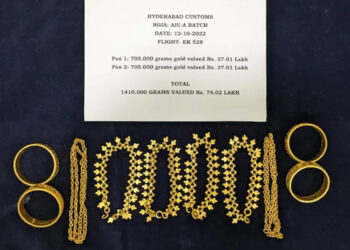 ഹൈദരാബാദ് : രാജീവ് ഗാന്ധി അന്താരാഷ്ട്ര വിമാനത്താവളത്തിൽ നിന്നും സ്വർണം പിടികൂടി. 7.89 കോടി രൂപ വിലമതിക്കുന്ന സ്വർണമാണ് കസ്റ്റംസ് എയർ ഇന്റലിജൻസ് വിഭാഗം പിടിച്ചെടുത്തത്. സംഭവുമായി ...