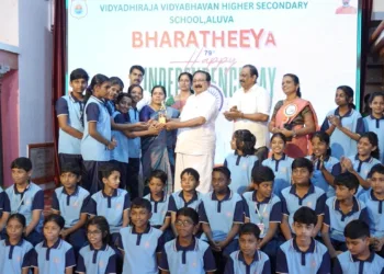 ആലുവ വിദ്യാധിരാജ സ്കൂളിൽ മെഗാ ദേശഭക്തിഗാനാലാപന മത്സരം നടത്തി: 1700 ഓളം വിദ്യാർത്ഥികൾ പങ്കെടുത്തു