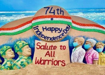 ഭാരതം എഴുപത്തി നാലാം സ്വാതന്ത്ര്യ ദിനം ആഘോഷിക്കുന്ന വേളയിൽ ,ലോകം കണ്ട മികച്ച മണൽച്ചിത്ര പ്രതിഭകളിൽ ഒരാളായ സുദർശൻ പട്നായിക് , കൊറോണക്കെതിരെ പോരാടുന്നവരെയും സൈനികരെയും അനുസ്മരിച്ചു ...