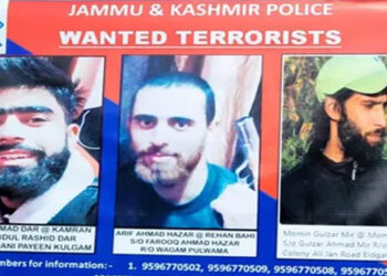 കശ്മീരിൽ സജീവമായ മൂന്ന് ഭീകരരുടെ ചിത്രങ്ങൾ പുറത്തുവിട്ട് പോലീസ്; പിടികിട്ടാപ്പുള്ളികളുടെ വിവരം നൽകുന്നവർക്ക് ധനസഹായം