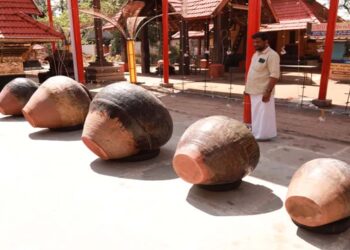 മദ്യക്കുപ്പികളും പാക്കറ്റിലാക്കിയ കരിപ്പൊടിയും; ആനയുടെ നെറ്റിപ്പട്ടവും ജീവതയും മാലിന്യക്കൂമ്പാരത്തിൽ; കൊട്ടാരക്കര ഗണപതി ക്ഷേത്രത്തിൽ വിജിലൻസ് പരിശോധന