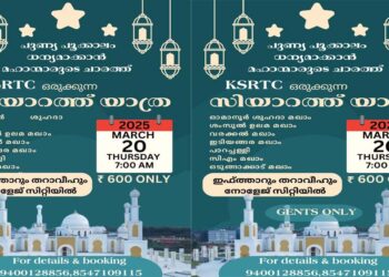 റംസാൻ മാസം പ്രമാണിച്ച് കെ.എസ്.ആർ.ടി.സിയുടെ 'ജെൻ്റസ് ഓൺലി' യാത്ര. കെ.എസ്.ആർ.ടി.സി തിരൂരിന്റെ വകയാണ് മാർച്ച് 20 ന് 'സിയാറത്ത് യാത്ര' നടത്തുന്നത്. പുരുഷൻമാർക്ക് മാത്രമാണ് ബസിൽ കേറി ...