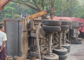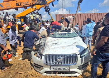 കാറിന്റെ മുകളിലേക്ക് കണ്ടെയ്നർ ലോറി മറിഞ്ഞുവീണു; ഒരു കുടുംബത്തിലെ ആറ് പേർക്ക് ദാരുണാന്ത്യം