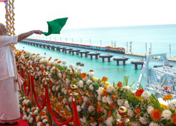പുതിയ പാമ്പൻ റെയിൽവേ പാലം ഉദ്ഘാടനം ചെയ്ത് നരേന്ദ്രമോദി; രാമേശ്വരത്തിനും താംബരത്തിനും ഇടയിലുള്ള ട്രെയിൻ സർവീസും പ്രധാനമന്ത്രി ഫ്ലാഗ് ഓഫ് ചെയ്തു