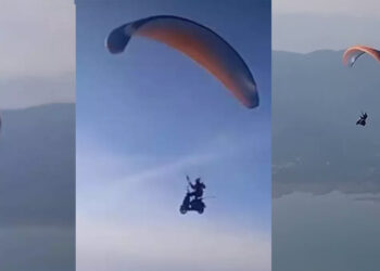 പറന്നുയർന്ന പിന്നാലെ പാരാഗ്ലൈഡർ തകർന്ന് വീണു; വിനോദസഞ്ചാരിക്ക് ദാരുണാന്ത്യം; വീഡിയോ