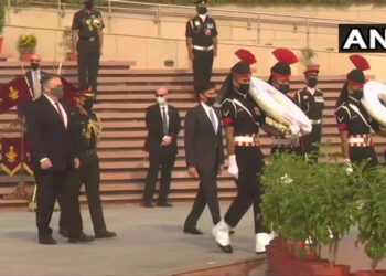 ദേശീയ യുദ്ധസ്മാരകം സന്ദര്ശിച്ച് മൈക്ക് പോംപിയോയും എസ്പറും; ബലിദാനി സൈനികര്ക്ക് പുഷ്പചക്രമര്പ്പിച്ച് പ്രണാമം