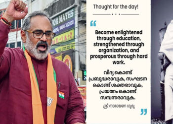 “സംഘടനകൊണ്ട് ശക്തരാവുക, പ്രയത്നംകൊണ്ട് സമ്പന്നരാവുക” ; ബിജെപിയെ നയിക്കാനൊരുങ്ങി രാജീവ് ചന്ദ്രശേഖർ