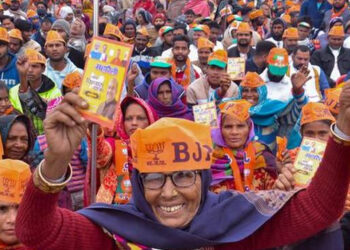 എൻഡിഎ സ്ഥാനാർത്ഥിയായ ഭർത്താവിന് വേണ്ടി കോൺഗ്രസ് എംപിയായ ഭാര്യ പ്രചാരണത്തിനിറങ്ങി; കൗതുക കാഴ്ച ബിജെപിയുടെ തെരഞ്ഞെടുപ്പ് വേദിയിൽ
