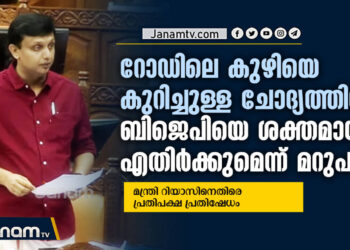 റോഡിലെ കുഴിയെ കുറിച്ചുള്ള ചോദ്യത്തിന് ബിജെപിയെ ശക്തമായി എതിര്‍ക്കുമെന്ന് മറുപടി; മന്ത്രി റിയാസിനെതിരെ പ്രതിപക്ഷ പ്രതിഷേധം