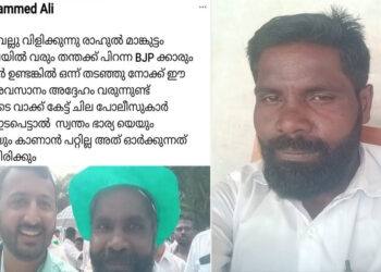 പാലക്കാട്: തൃത്താല ചാലിശ്ശേരിയിൽ ബിജെപി പ്രവർത്തകർക്ക് നേരെ വെല്ലുവിളിയും,പൊലീസുകാർക്ക് നേരെ വധഭീഷണിയും മുഴക്കി സമൂഹമാധ്യമങ്ങളിൽ പോസ്റ്റിട്ട കോൺഗ്രസ് പ്രാദേശിക നേതാവ് അറസ്റ്റിലായി. ചാലിശ്ശേരി പാലക്കൽ പീടികയിൽ മുഹമ്മദലിയെയാണ് ...