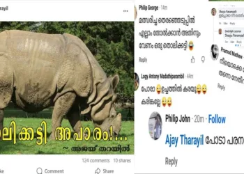 ‘തൊലിക്കട്ടി അപാരം’ കാണ്ടാമൃഗത്തിന്റെ ഫോട്ടോ പോസ്റ്റ് ചെയ്തു കോൺഗ്രസ് നേതാവ് അജയ് തറയിൽ: പച്ചത്തെറിയുമായി ഷാഫി-രാഹുൽ സൈബർ ഗുണ്ടകൾ