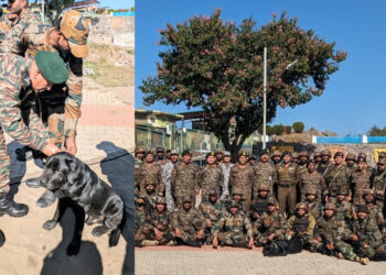 ഒളിത്താവളത്തിൽ തമ്പടിച്ച ഭീകരസംഘത്തെ കണ്ടെത്തി; ‘ഡൊമിനോ’യുടെ മിടുക്കിൽ വധിച്ചത് കൊടും ഭീകരരെ; ധീര സേവനത്തിന് ആർമി നായയ്ക്കും പരിശീലകനും ആദരം
