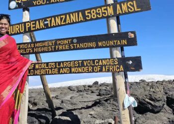 “പാരമ്പര്യവും ശക്തിയും കൂടെ വേണം”; സാരി ധരിച്ച് ‘കിളിമഞ്ചാരോ’ കൊടുമുടി കീഴടക്കി യുവതി