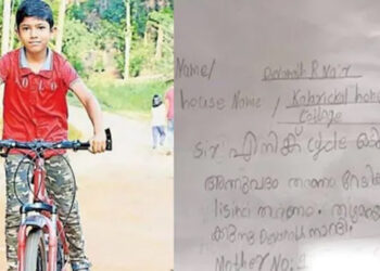 ഇടുക്കി: സൈക്കിൾ ചവിട്ടാനുള്ള ലൈസൻസ് ചോദിച്ച് പോലീസ് സ്റ്റേഷനിലെത്തി എട്ടുവയസുകാരൻ. നെടുങ്കണ്ടം സ്വദേശിയായ ദേവനാഥ് എന്ന നാലാം ക്ലാസുകാരനാണ് കക്ഷി.തന്റെ നോട്ടുബുക്കിൽ എഴുതി തയ്യാറാക്കിയ അപേക്ഷയുമായി എത്തിയ ...