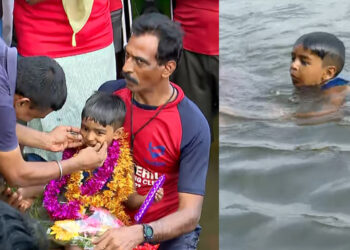 പെരിയാറിന് കുറുകെ നീന്തിക്കടന്ന ഏറ്റവും പ്രായ കുറഞ്ഞയാൾ; റെക്കോർഡ് സ്വന്തമാക്കി അഞ്ച് വയസുകാരൻ