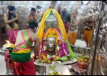 ഉജ്ജയിനി മഹാകാലേശ്വർ ക്ഷേത്രത്തിൽ ദർശനം നടത്തി മുഖ്യമന്ത്രിമാരായ ശിവരാജ് സിംഗ് ചൗഹനും, പ്രമോദ് സാവന്തും, മുൻമുഖ്യമന്ത്രി യെദ്യൂരപ്പയും