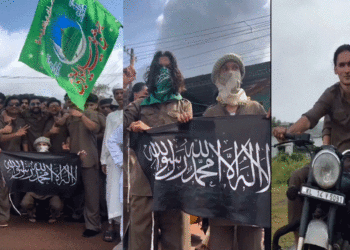 കാസർഗോഡ് ചിത്രീകരിച്ചത്?? ISISന്റെ ചൂണ്ടുവിരൽ മുദ്ര, യൂണിഫോം; കറുത്ത തുണിയിലെ വെള്ള അക്ഷരങ്ങളുള്ള ഷഹാദാ ബാനർ; വീഡിയോ സോഷ്യൽ മീഡിയയിൽ പ്രചരിക്കുന്നു