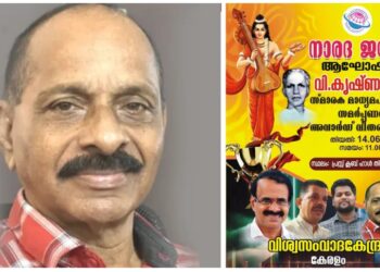 തിരുവനന്തപുരം: ജൂണ് 14ന് നാരദജയന്തിയോടനുബന്ധിച്ച് പ്രസ്ക്ലബില് സംഘടിപ്പിക്കുന്ന സമ്മേളനത്തില് മുതിര്ന്ന മാധ്യമ പ്രവര്ത്തകനും ജന്മഭൂമി റസിഡന്റ് എഡിറ്ററുമായ കെ. കുഞ്ഞിക്കണ്ണനെ വിശ്വസംവാദകേന്ദ്രം ആദരിക്കും. രാവിലെ 11 ന് ...